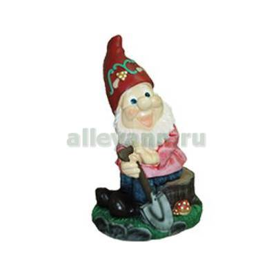 Фигура садовая ГНОМ С ЛОПАТКОЙ НА ПНЕ в Ярославле