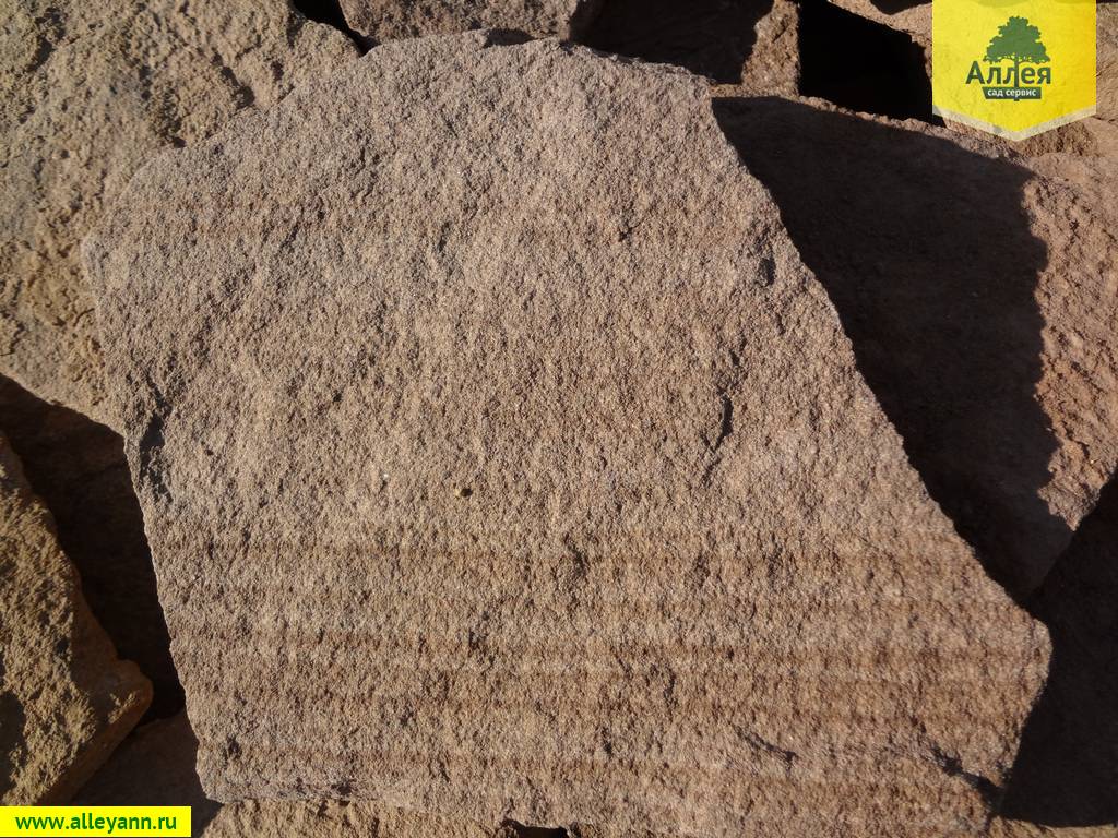 - Светлых серовато-розовато-бежевых тонов, с большим разнообразием оттенков фона и полос. Тонкоплиточный песчаник средней прочности и морозостойкости. Камень добывается в Украине.