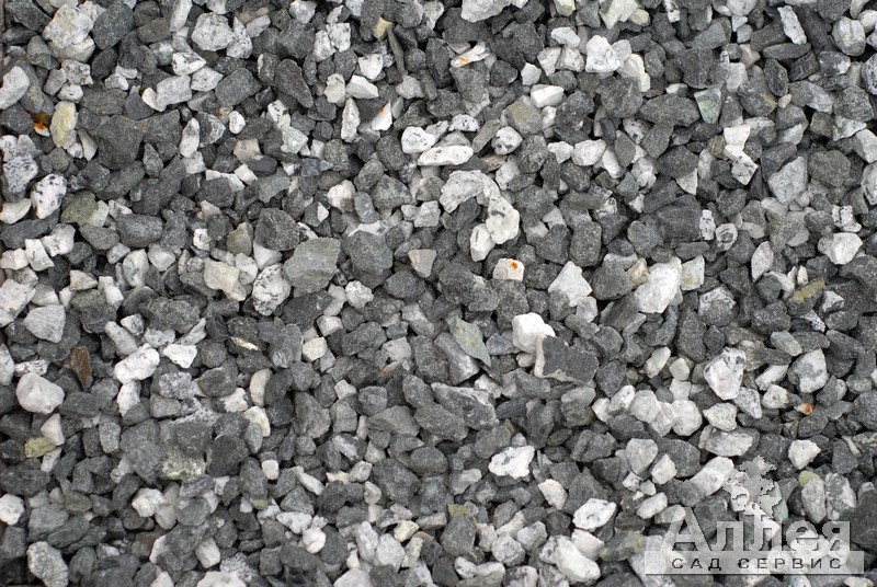 Получают путем дробления природного гранита. Цвет серый, белый. Форма произвольная, округлая. Фракция 5-20мм. Фактура гладкая, скользящая, с легким рельефом. Использование: Декоративная отсыпка, Альпийские горки, Ландшафтный дизайн, Мозайка, В строительстве